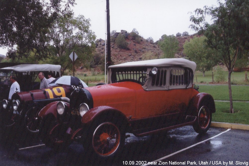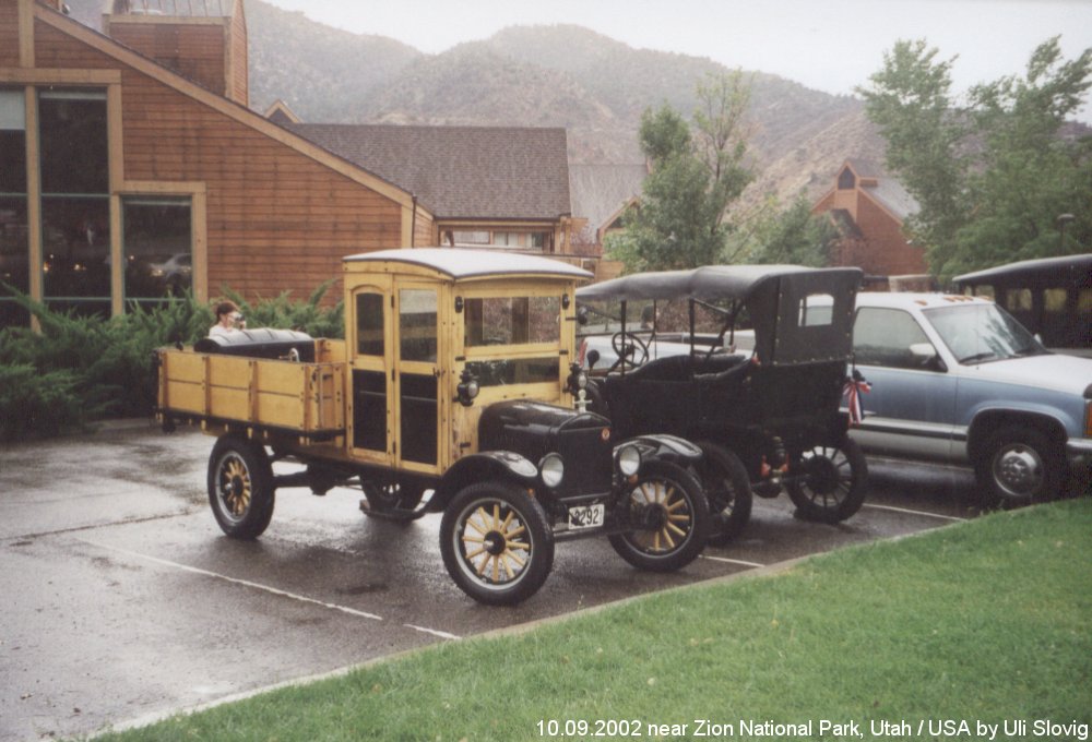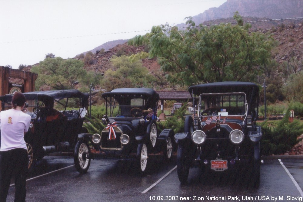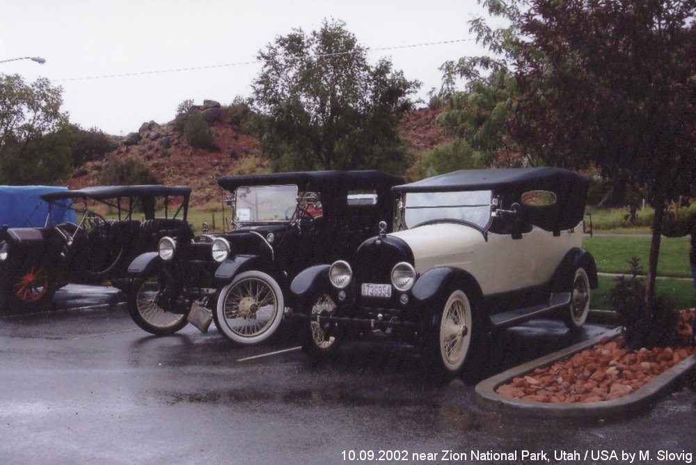 On my USA journey in 2002 many autoveterans met us near the „Zion“ Nationalpark. Because on a car park shortly before the entrance of the Park a bigger amount parked. If we decided to us to insert a small photo stop. In the first four pictures I have put together a small choice. |