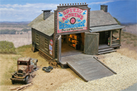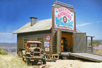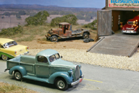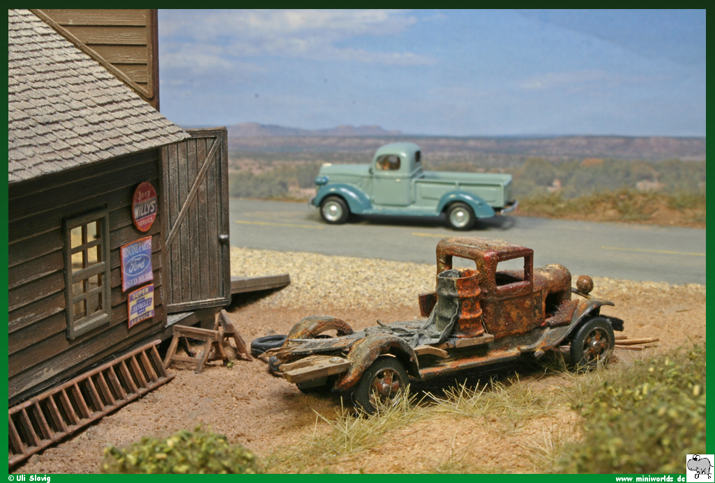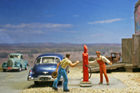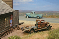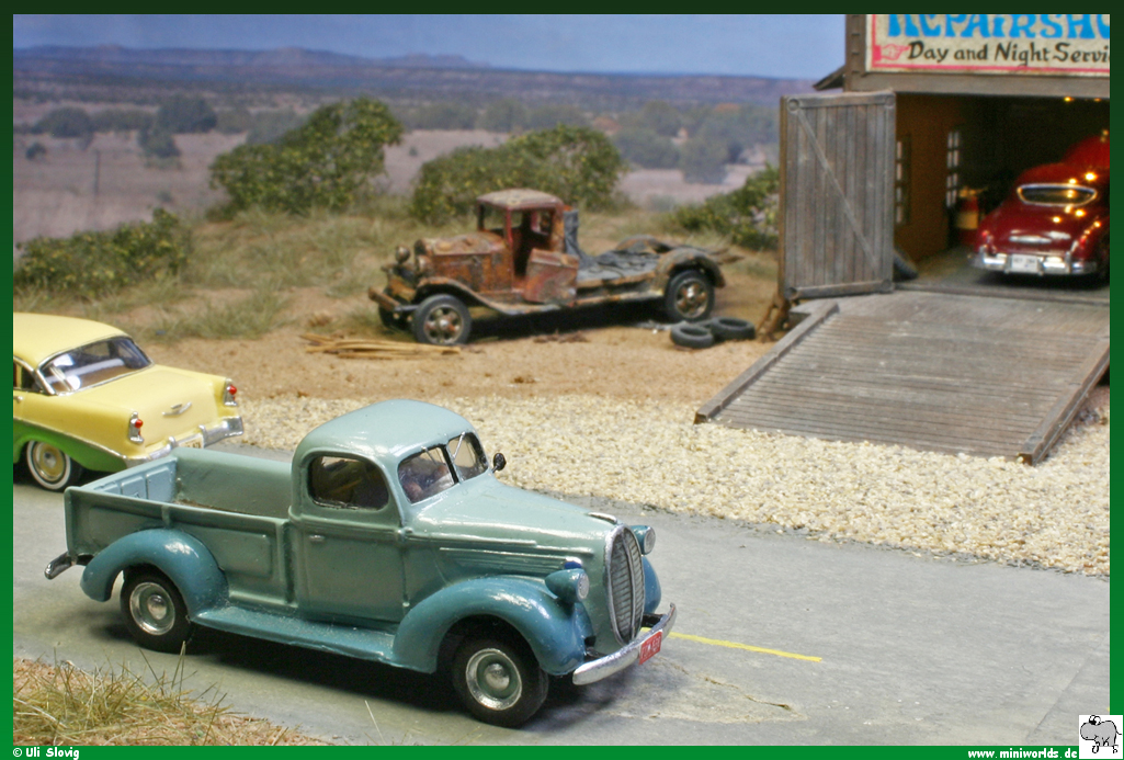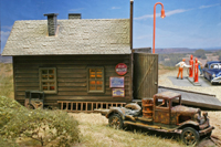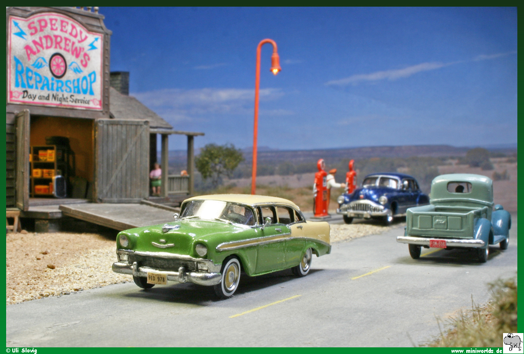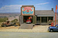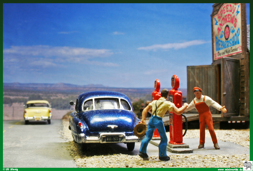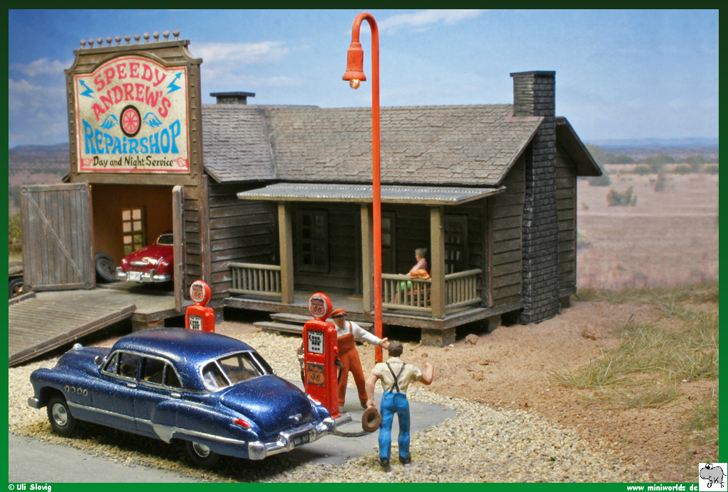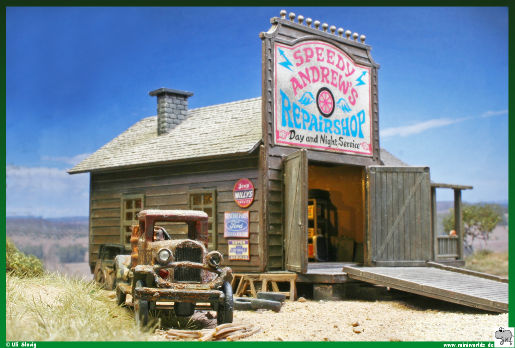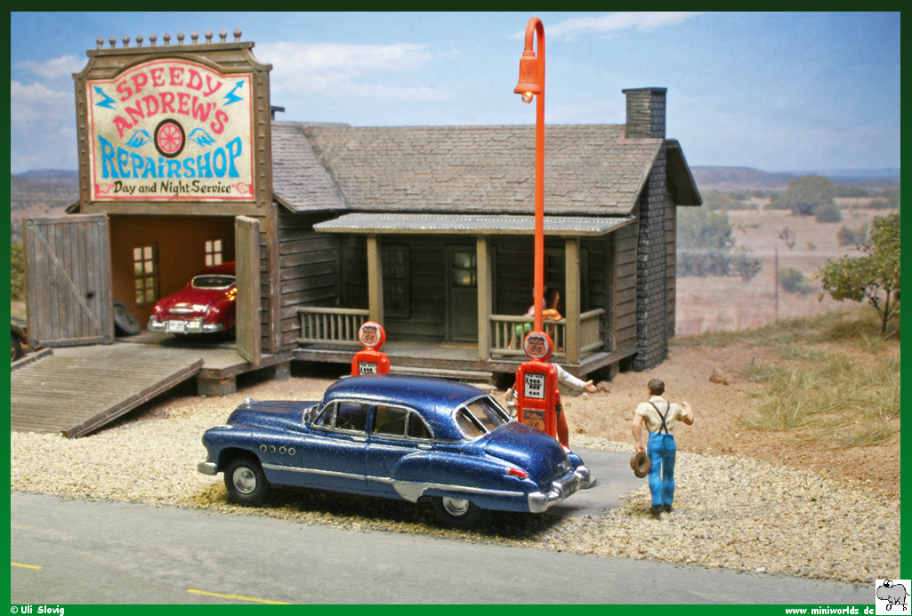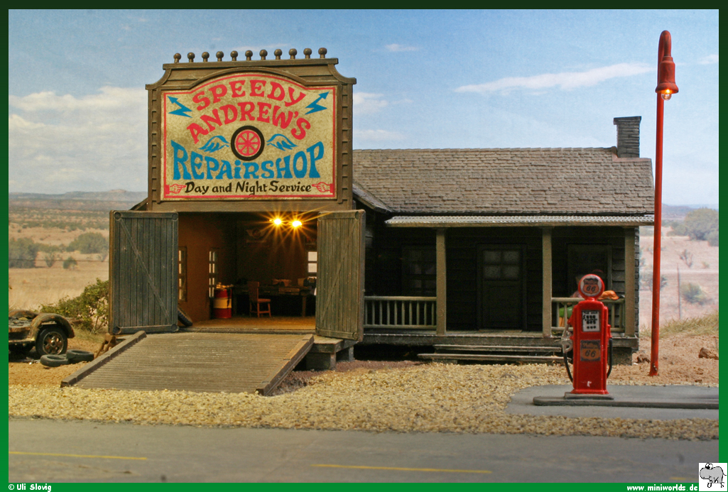 diorama around Speedy Andrew's repair shop was created on a