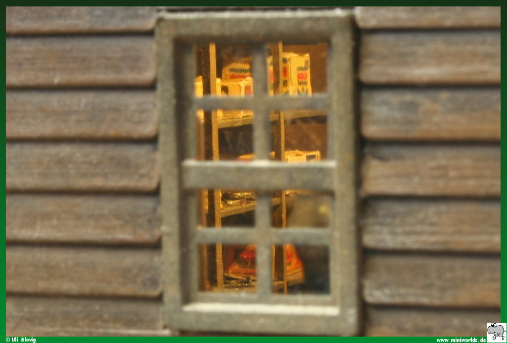 das hintere Fenster kann man die Regale in der Werkstatt
