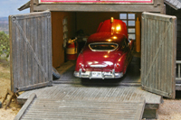 vehicles enter the workshop via a ramp.