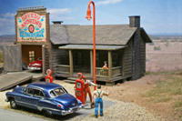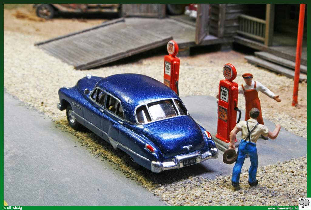 seinem Buick Roadmaster ist Farmer Smith gerade an den Zapfsäulen