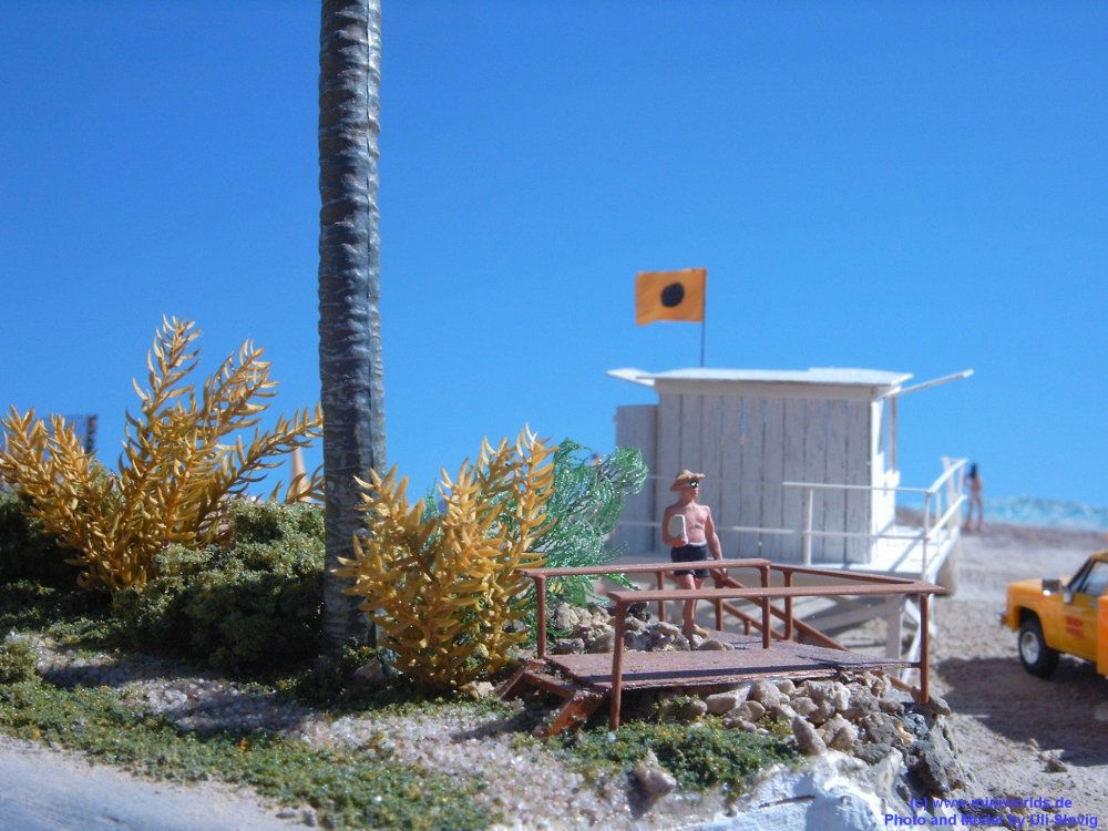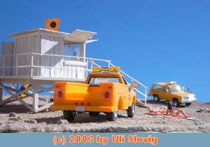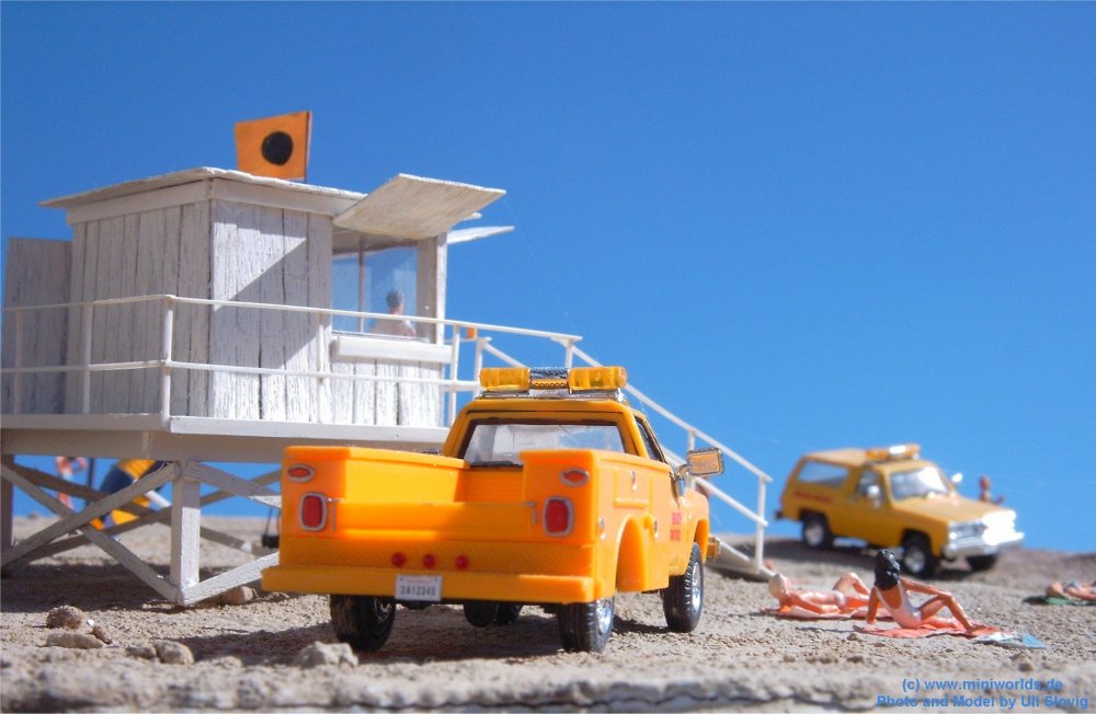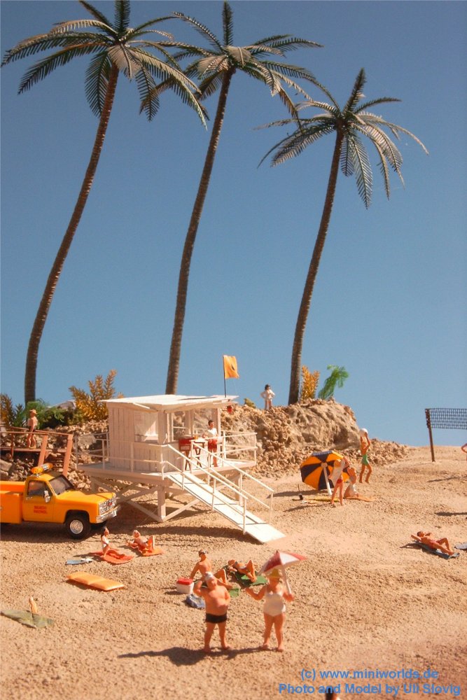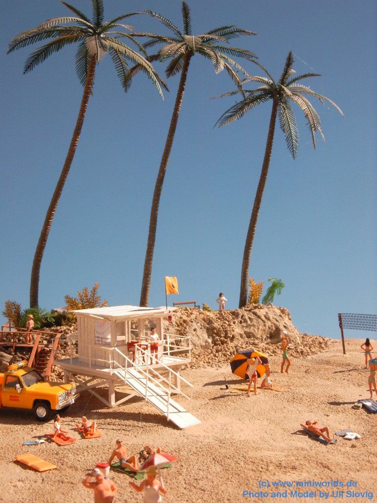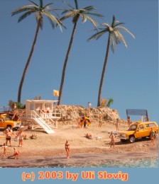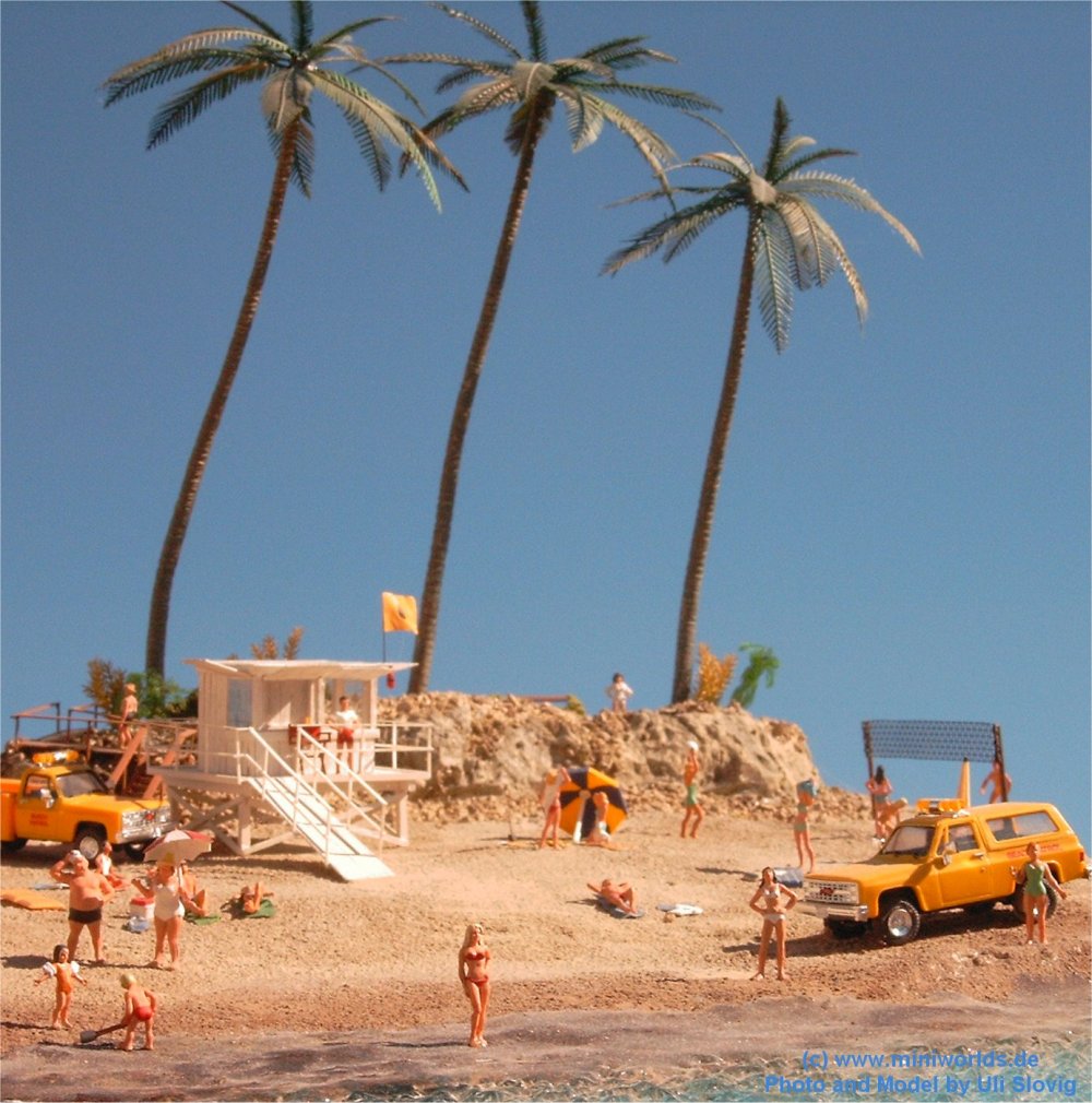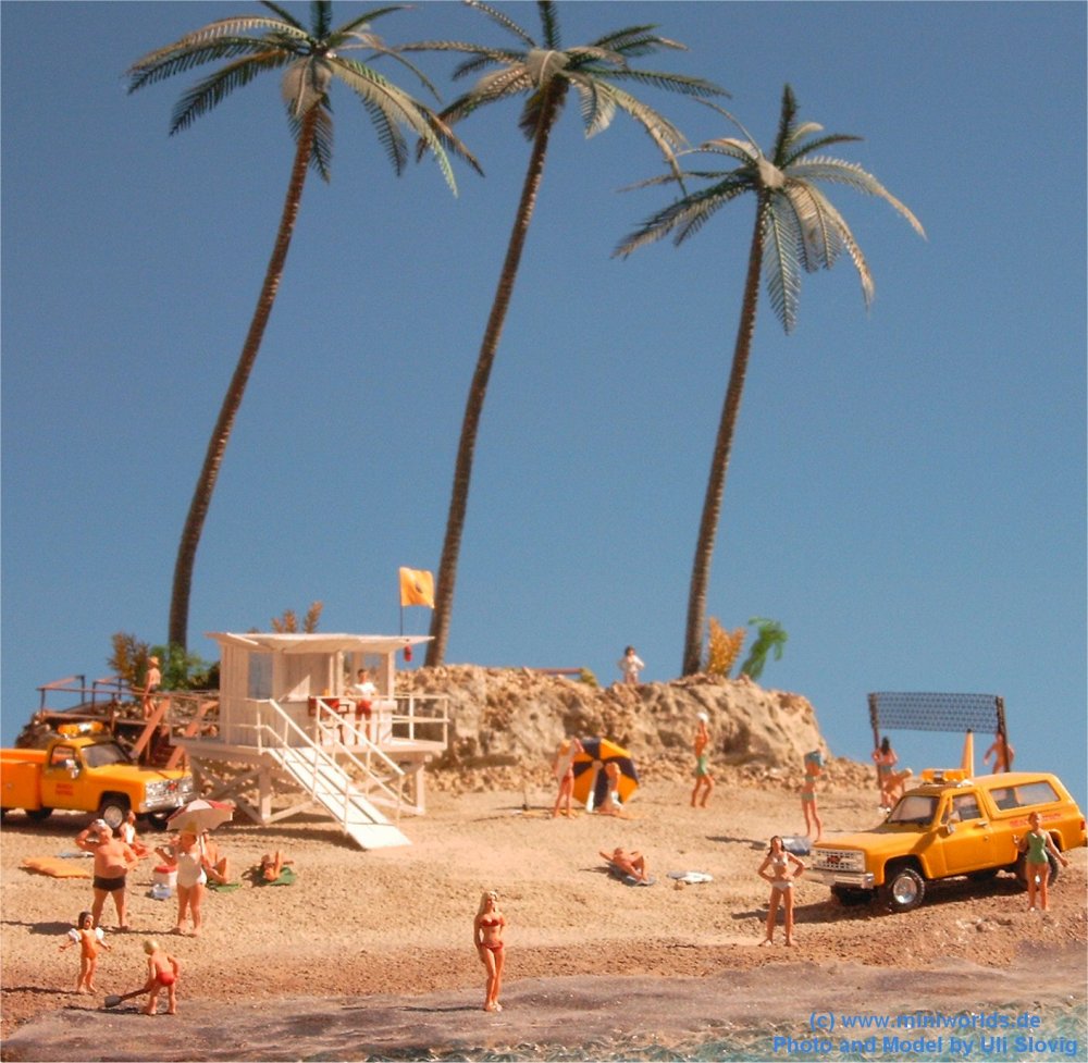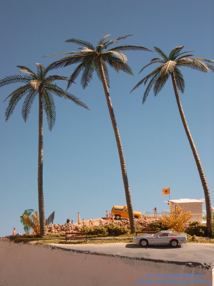 Palmen. Die beiden Baywatch Fahrzeuge entstammen den Trident