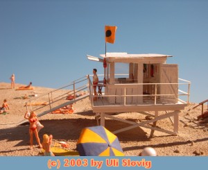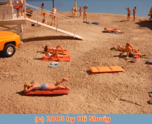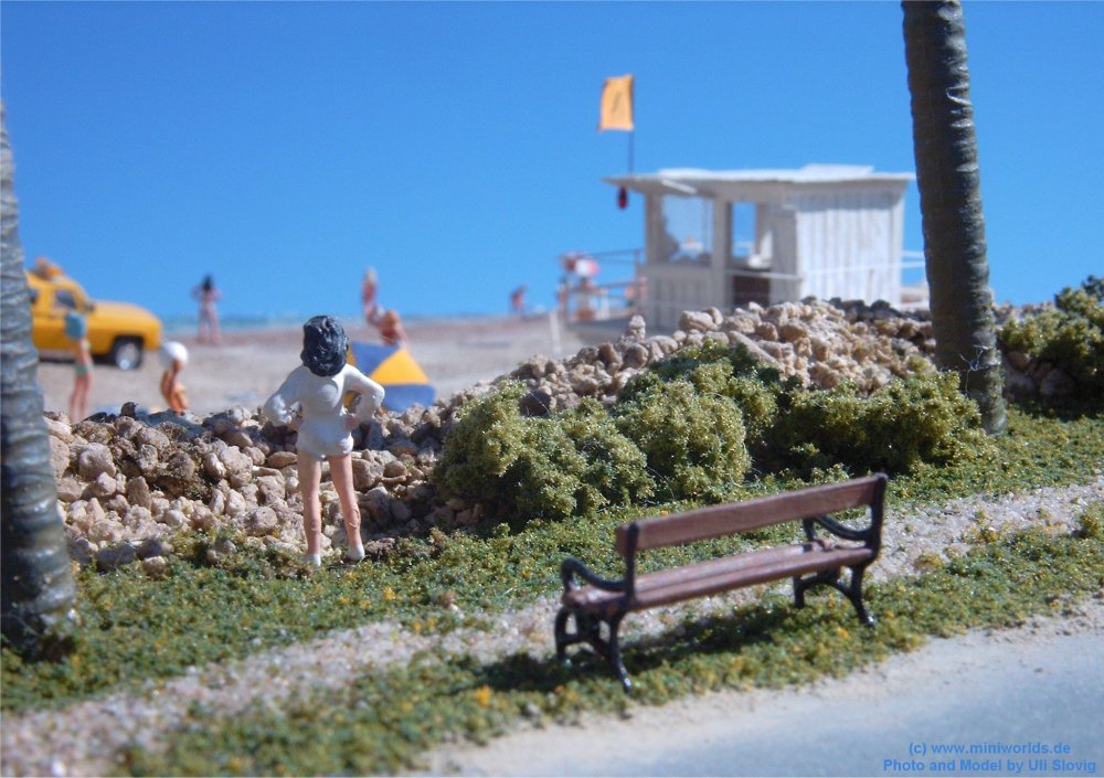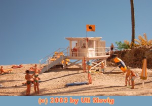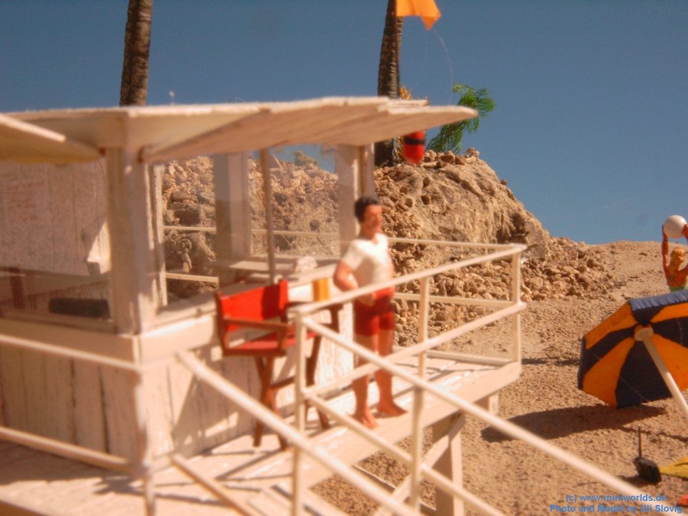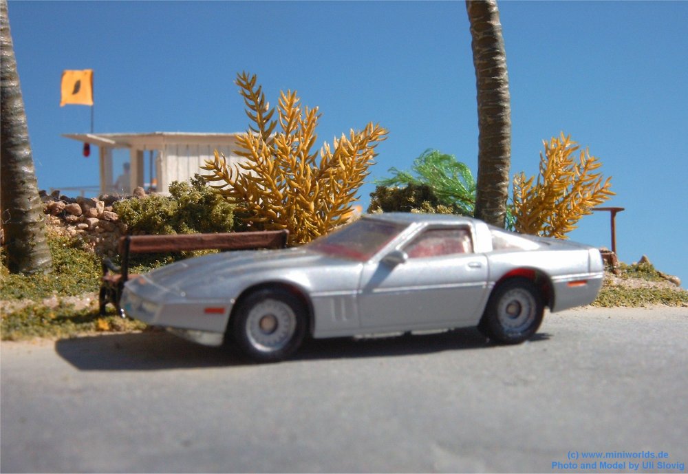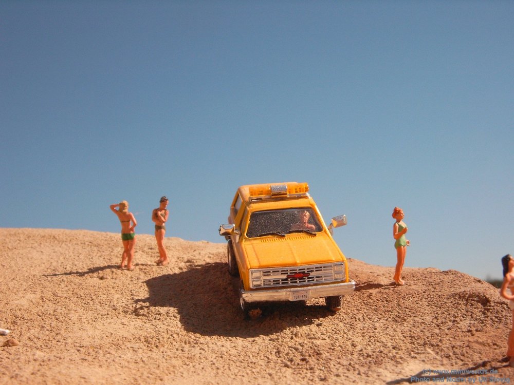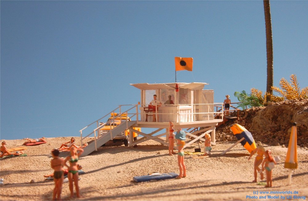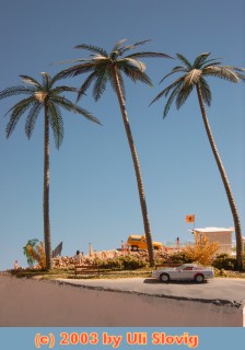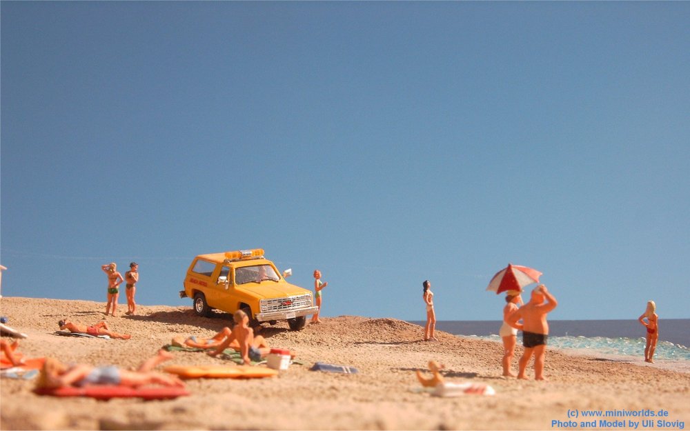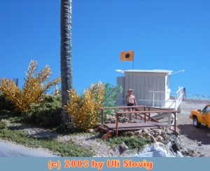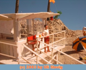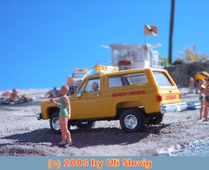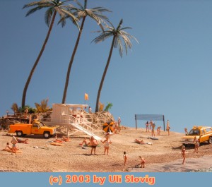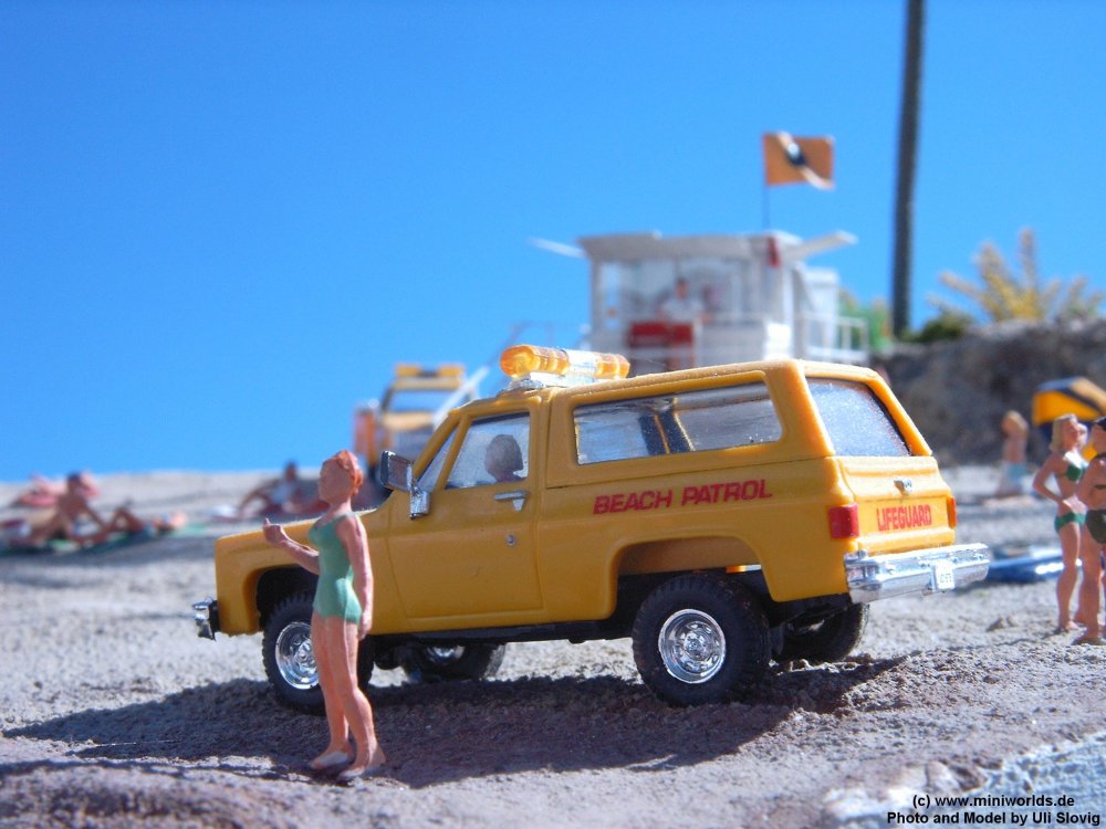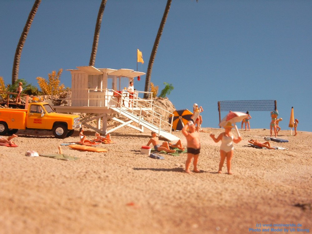 Palmen. Die beiden Baywatch Fahrzeuge entstammen den Trident