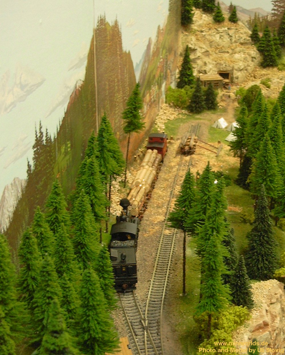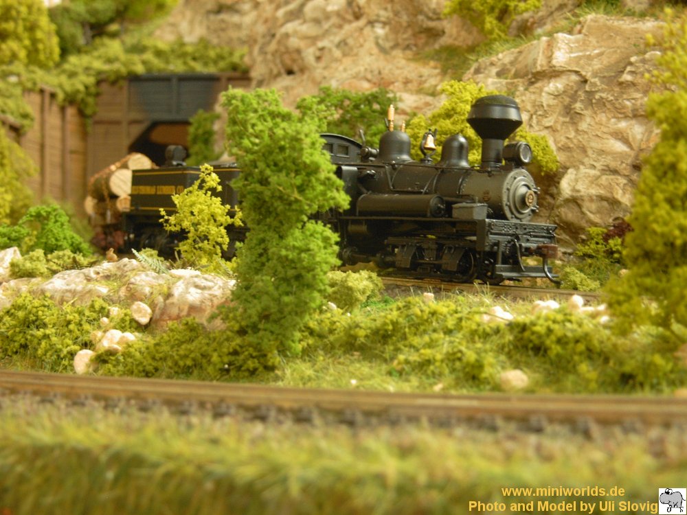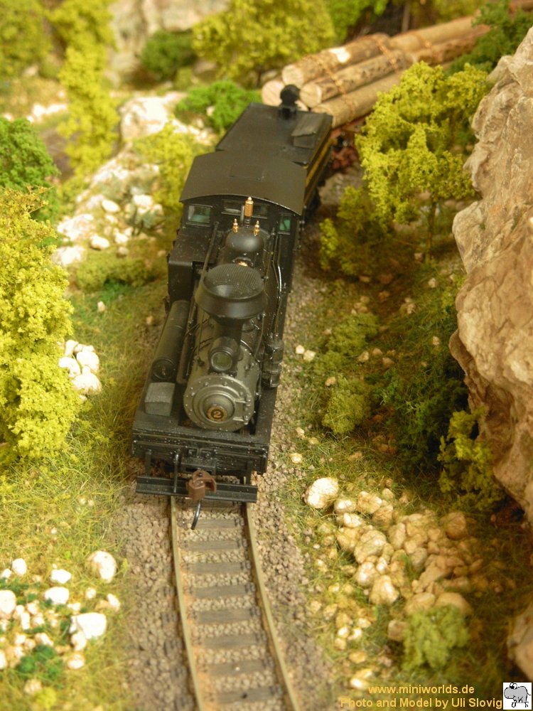 Shay mit einen Holzzug am Haken The Shay with a wood train on
