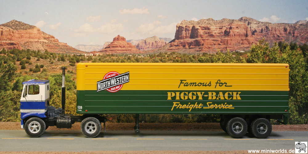 semi-trailer is marked as the Chicago and North Western Railroad,