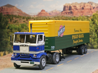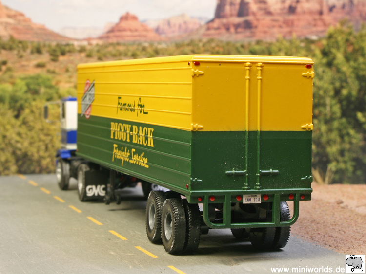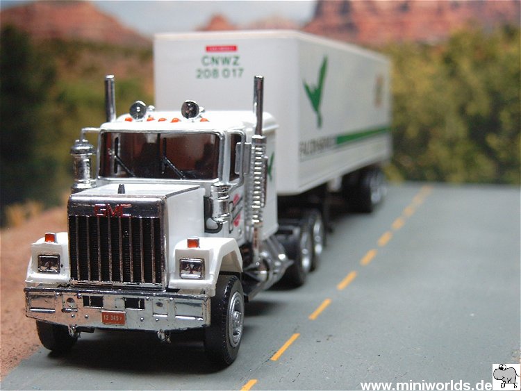 Operator lackiert. Aufgesattelt ist ein Auflieger der Chicago and